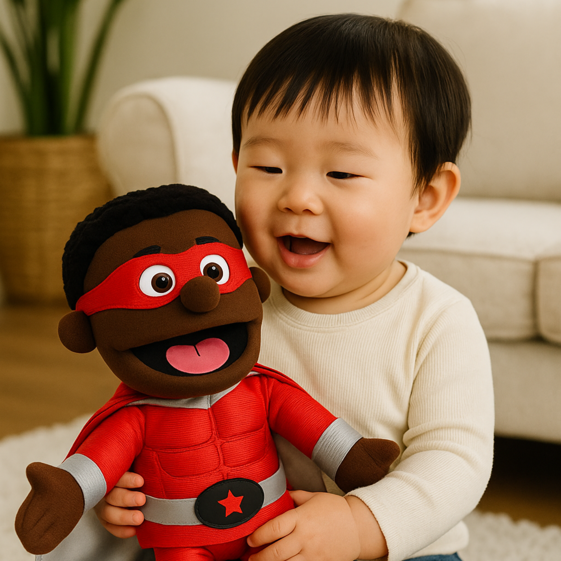 Le Super-Héros impressionne dès le premier regard avec son corps musclé, sa cape éclatante et son masque brodé. Un vrai personnage de caractère, prêt à embarquer les enfants dans des histoires pleines d’action et de courage.